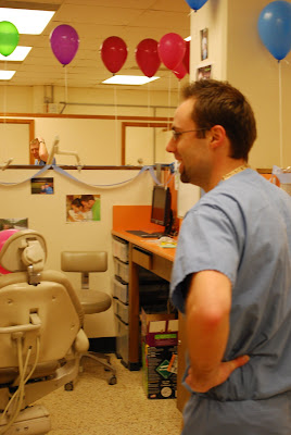 I decorated Chauncey's cube at the Dental School with lots of pictures, balloons, and of course, donuts. I think he will be a little embarassed all day, but hey, its his 30th!!